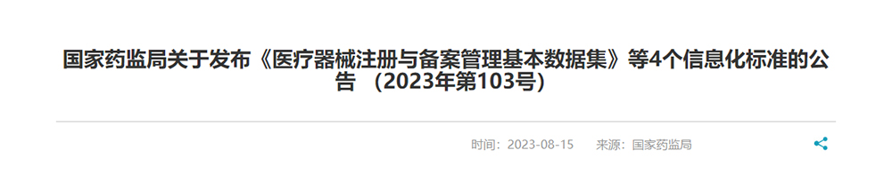 國家藥監(jiān)局關于發(fā)布《醫療器械注冊與備案管理基本數據集》等4個信息化標準的公告..